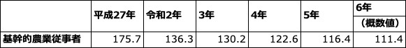 農業従事者人口は、基幹的農業従事者数といって、ふだん仕事として主に自営農業に従事している者を数えた数で計算しています。
