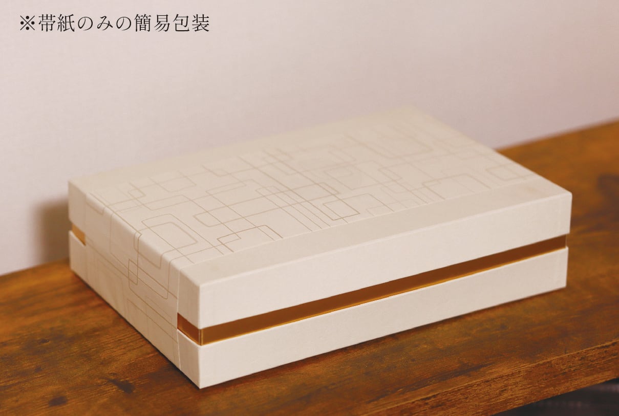 包装はギフトボックスに帯紙のみの簡易包装となります。