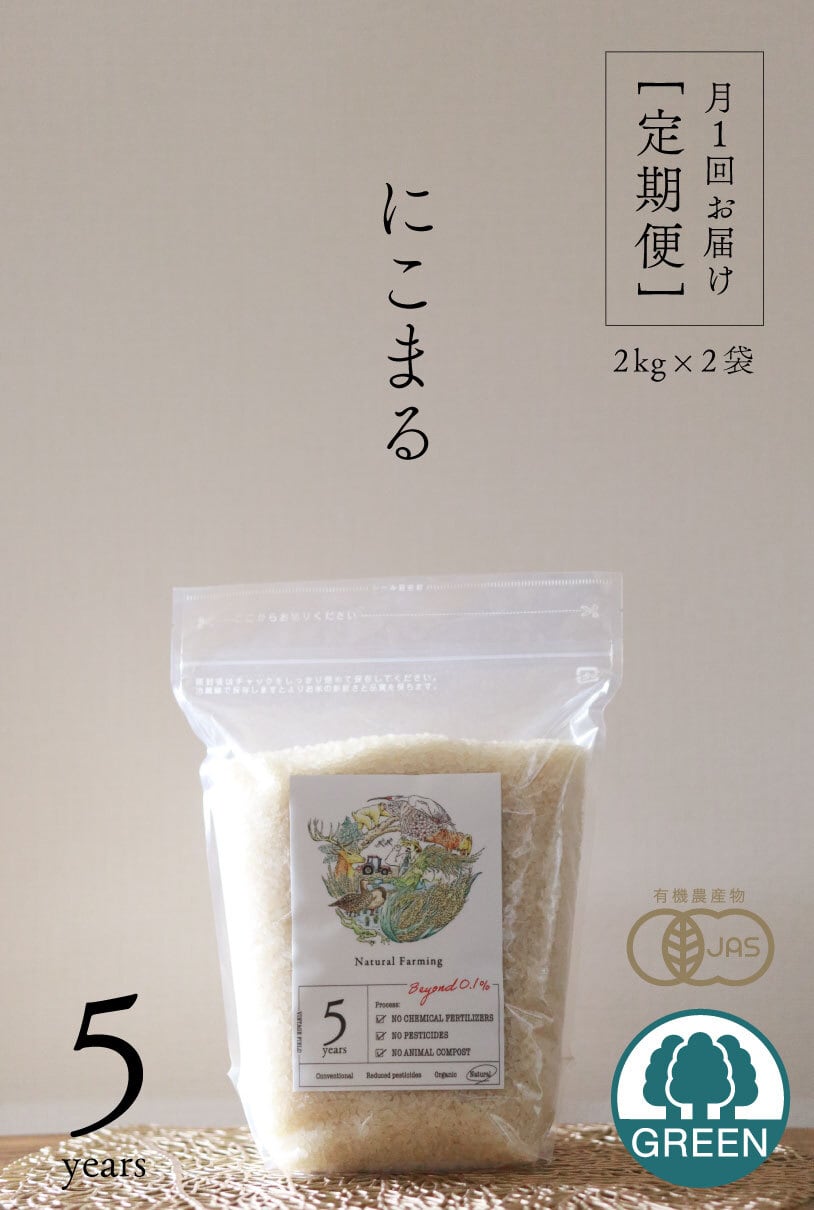 <定期配送>にこまる白米2kg×2袋 [GREEN(5年継続圃場・有機JAS)] ※本州・四国・九州は送料無料